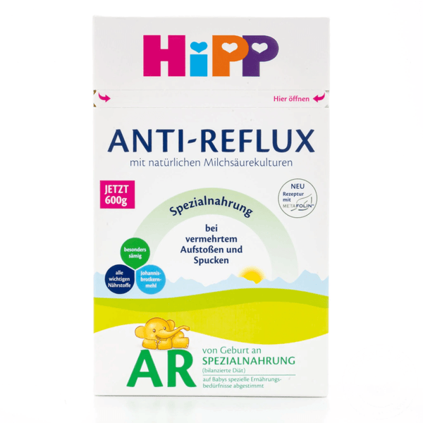 HiPP Anti-Reflux is specially designed for infants who are susceptible to acid-reflux or excessive spitting up. The addition of the natural thickener carob bean gum allows the formula to thicken in the bottle, which helps the feed to stay down.