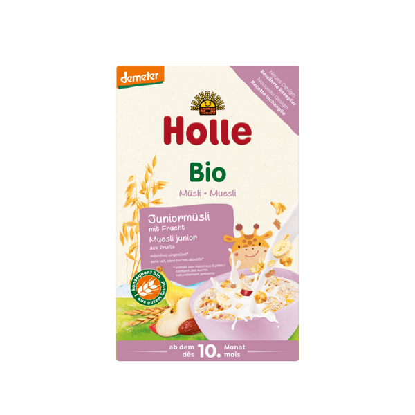 Holle organic multigrain muesli with fruit is made using whole grains, which are in an easily digestible form and is suitable for babies 10 months onwards and for when beginning to wean as a part of a mixed diet.